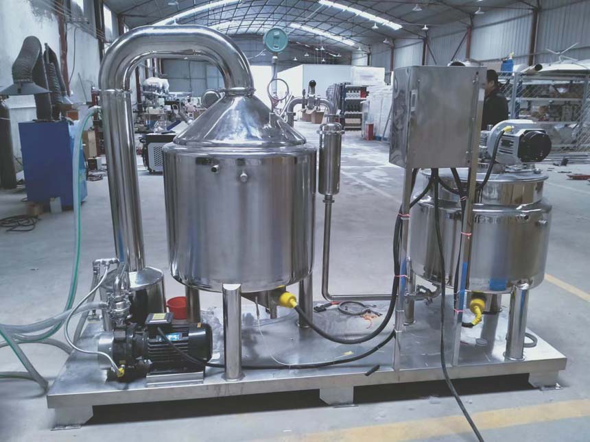 應和真空泵一直要開著,冷卻水的溫度越低越好。在濃縮過程中排出的二次蒸汽經過冷凝器被及時冷卻成水進入回收罐。